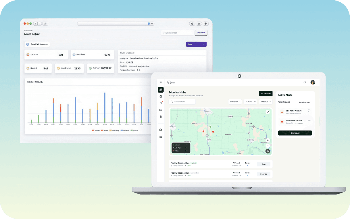 Manage multiple ponds and sites in one platform. As deployments grow, the marginal cloud management cost goes down — not up.